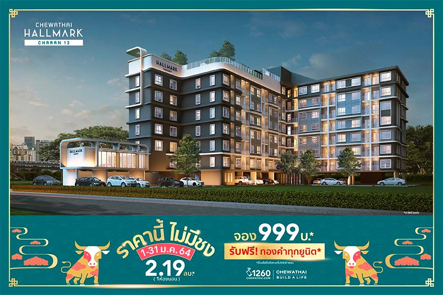 "ฮอลล์มาร์ค จรัญ 13 (Hallmark Charan 13)" ใกล้ ครบ คุ้ม ด้วยห้องที่กว้างกว่า สวยกว่า กับทำเลที่คุ้นเคย ห้องแบบ 1 ห้องนอน ราคาพิเศษ เริ่ม 2.19* ล้านบาท สำหรับลูกค้าที่จอง ทำสัญญา และโอนกรรมสิทธิ์ภายในเดือนมกราคม 2564 นี้รับฟรี