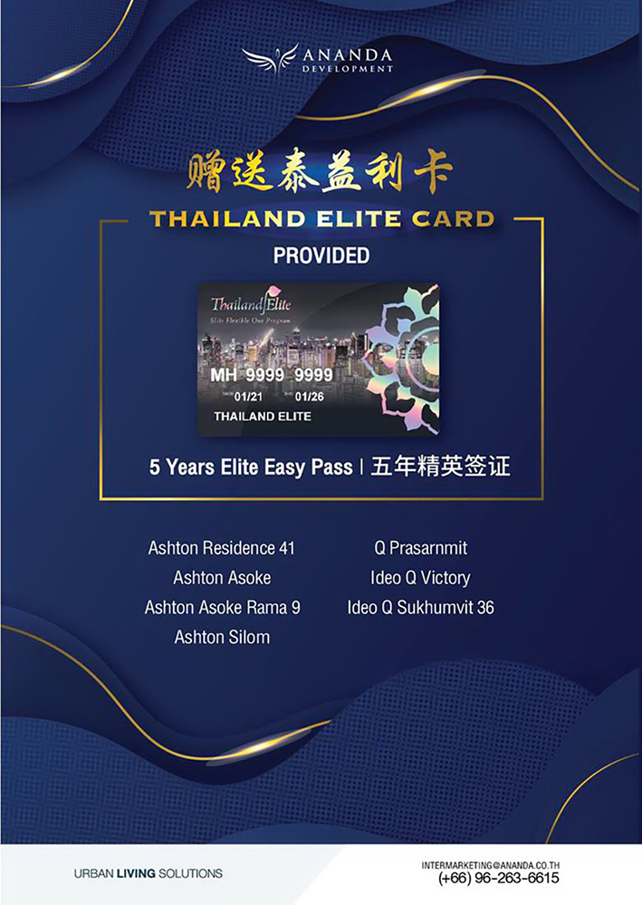 อนันดาฯ เข้าร่วมโครงการ "Elite Flexible One" เดินหน้าเจาะกลุ่มลูกค้าต่างชาติ