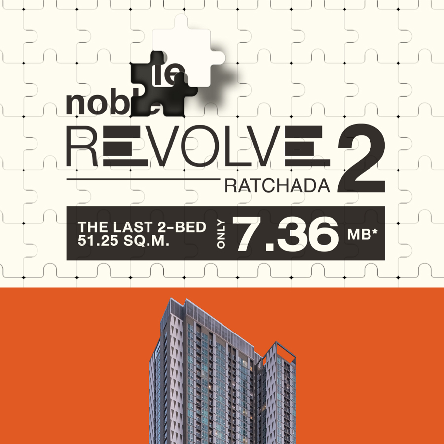 โนเบิล รีวอล์ฟ รัชดา ใกล้รถไฟฟ้าใต้ดิน MRT ศูนย์วัฒนธรรม เพียง 80 เมตร. กับ 1 ห้องนอน 53.8 ตร.ม.ยูนิตสุดท้าย เพียง 7.8 ล้าน*