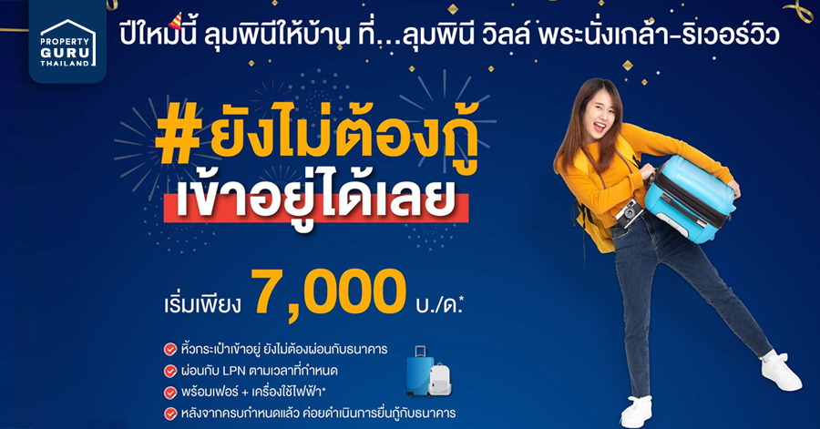 บริษัท แอล.พี.เอ็น.ดีเวลลอปเมนท์ จำกัด(มหาชน)(LPN) จัดโปรโมชั่นต้อนรับปีใหม่นี้ ลุมพินีให้บ้าน ที่...ลุมพินี วิลล์ พระนั่งเกล้า-ริเวอร์วิว เริ่มเพียง 7,000 บาท/เดือน ก็เข้าอยู่ได้เลย ยังไม่ต้องกู้ หมดกังวลเรื่องยื่นขอสิน ขั้นตอนง่ายๆ เพียง