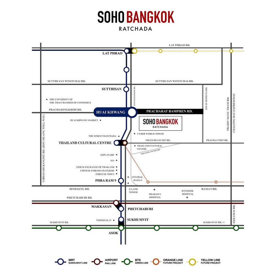 รวมถึงพื้นที่ส่วนกลางขนาดใหญ่ถึง 4 ชั้น รวม 1,680 ตารางเมตร ซึ่งมั่นใจได้ว่าสามารถเชื่อมต่อได้ทุกความต้องการ เช่น Sky Pool สระว่ายน้ำทรง L-shape ยาว 25 เมตร พร้อม Hydro Therapy Jacuzzi ที่สามารถมองเห็นทัศนียภาพได้ถึง 270 องศา Skyhigh Fitness มองเห็นวิวเมืองได้ขณะออกกำลังกาย และ Sky Lounge พื้นที่สังสรรค์บนชั้นดาดฟ้ามอบบรรยากาศผ่อนคลายตลอด 24 ชั่วโมง บนทำเลใจกลางทำเลรัชดาภิเษก-ห้วยขวาง รายล้อมไปด้วยอาคารสำนักงาน ศูนย์การค้า คอมมิวนิตี้ มอลล์ และแหล่งรวมไลฟ์สไตล์หลากหลาย เดินทางสะดวกห่างจากรถไฟฟ้าสายสีน้ำเงินสถานีห้วยขวาง เพียง 200 เมตร
