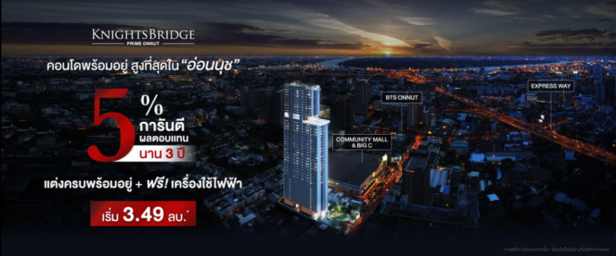 www.sansiri.com ไนท์บริดจ์ ไพร์ม อ่อนนุช (Knightsbridge Prime Onnut) คอนโดพร้อมอยู่เดินทางสะดวกคอนโดใกล้รถไฟฟ้า BTS อ่อนนุช และใกล้ทางด่วน 2 จุด สัมผัสวิวโค้งแม่น้ำจากมุมมองที่สูงที่สุดในอ่อนนุช โครงการ High-Rise ความสูง 47 ชั้น 1 อาคาร จำนวน 600 ยูนิต โปร่งสบายด้วยห้องเพดานสูง 3 เมตร ส่วนกลางลอยฟ้าพื้นที่มากกว่า 1,000 ตารางเมตร พร้อมระบบจอดรถอัตโนมัติแบบ Auto Parking จอดรถได้มากถึง 65% ใกล้ BIG C อ่อนนุช, CENTURY MOVIE PLAZA อ่อนนุช ,TESCO LOTUS อ่อนนุช, โรงเรียนนานาชาติ BANGKOK PREP และ SAINT ANDREW