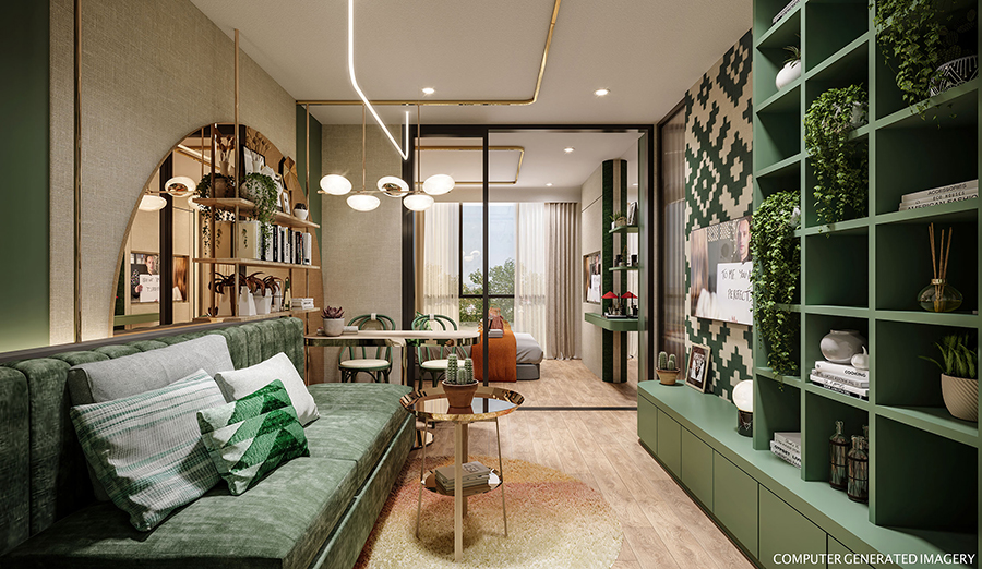 โครงการมีห้องชุดให้เลือกตอบโจทย์การอยู่อาศัยได้จริงถึง 3 แบบ โดยเฉพาะห้องชุดแบบสตูดิโอที่มีจำนวนห้องชุดมากที่สุด ขนาดพื้นที่ใช้สอย 21.50-25.35 ตารางเมตร ออกแบบฟังก์ชั่นมุมพักผ่อนแยกออกจากห้องครัวและห้องแต่งตัว นอกจากนี้ยังมีฟังก์ชั่นห้องชุดแบบ 1 ห้องนอน ขนาดพื้นที่ใช้สอย 27.95-28.85 ตารางเมตร จัดวางตำแหน่งของห้องครัวให้อยู่ติดกับระเบียง เพื่อช่วยระบายอากาศ และห้องชุดแบบ 1 ห้องนอน พลัส ซึ่งมีประมาณ 15% ของห้องชุดทั้งหมด ขนาดพื้นที่ใช้สอย 35-36 ตารางเมตร มีพื้นที่ Multi-purpose ที่ปรับเปลี่ยนเป็นห้องนอนเล็กหรือห้องทำงานได้ ส่วนห้องน้ำสามารถเข้า-ออก ได้จาก 2 ทาง