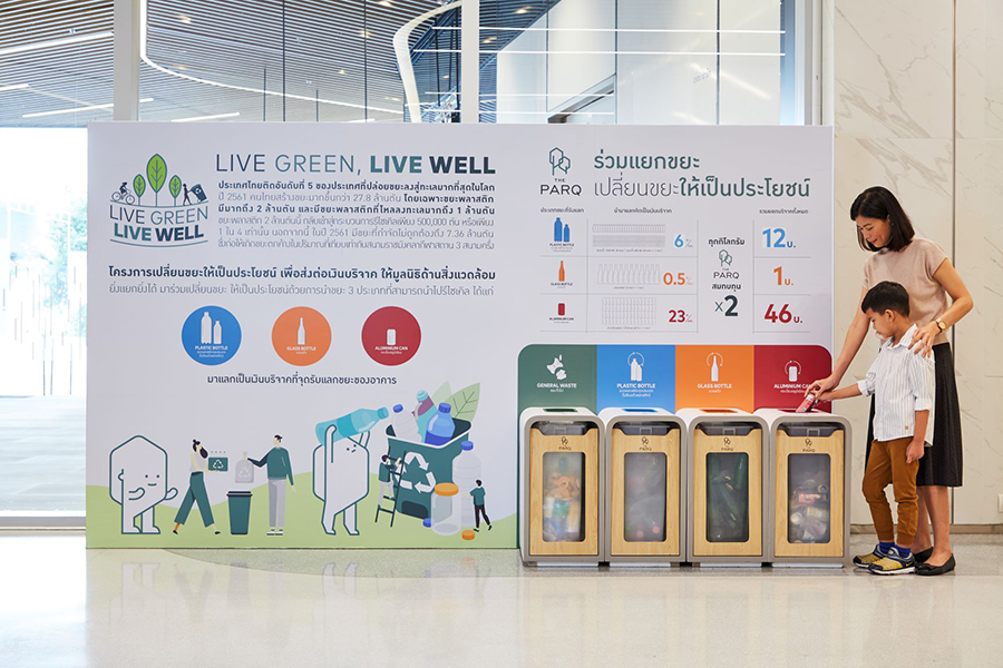 และเพื่อตอกย้ำความเป็นที่สุดของอาคารสีเขียวเพื่อสิ่งแวดล้อมอย่างยั่งยืน เดอะ ปาร์ค ได้จัดมุมคัดแยกขยะรีไซเคิลเพื่อเปลี่ยนเป็นเงินบริจาคให้กับมูลนิธิผืนป่าในใจเรากับโครงการ LIVE GREEN LIVE WELL และยังส่งเสริมให้ผู้จัดงานและผู้มาร่วมงานใส่ใจต่อสิ่งแวดล้อม ด้วยการลดการใช้บรรจุภัณฑ์พลาสติกภายในงานนี้