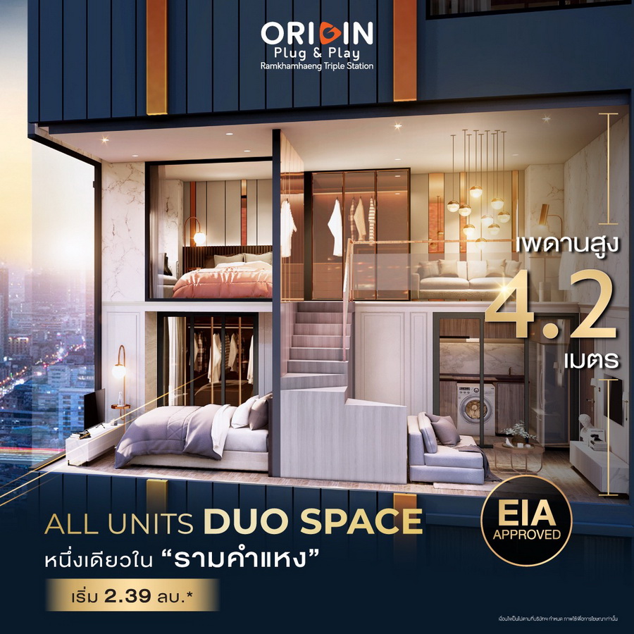 "ออริจิ้น" เร่งเครื่อง NEXT LEVEL เปิด 2 แบรนด์ใหม่ รุกตลาดคอนโดช่วง WFH ส่ง "ออริจิ้น ปลั๊ก แอนด์ เพลย์ รามคำแหง ทริปเปิ้ล สเตชั่น" คอนโด Duo Space พื้นที่ใช้สอย 2 ชั้น เพดานสูง 4.2 ม. รองรับทุกกิจกรรม และกลุ่ม Start Up ที่อยากมีพื้นที่สร้างธุรกิจส่วนตัว บนทำเลแห่งอนาคต ราคาเริ่ม 2.39 ล้าน พร้อมบุกตลาด "คอนโดเลี้ยงสัตว์ได้" ครั้งแรกกับ "บริกซ์ตัน เพ็ทแอนด์เพลย์ สุขุมวิท107" ออกแบบฟังก์ชันตอบโจทย์ทั้งคนและสัตว์เลี้ยง เริ่มเพียง 1.89 ล้าน