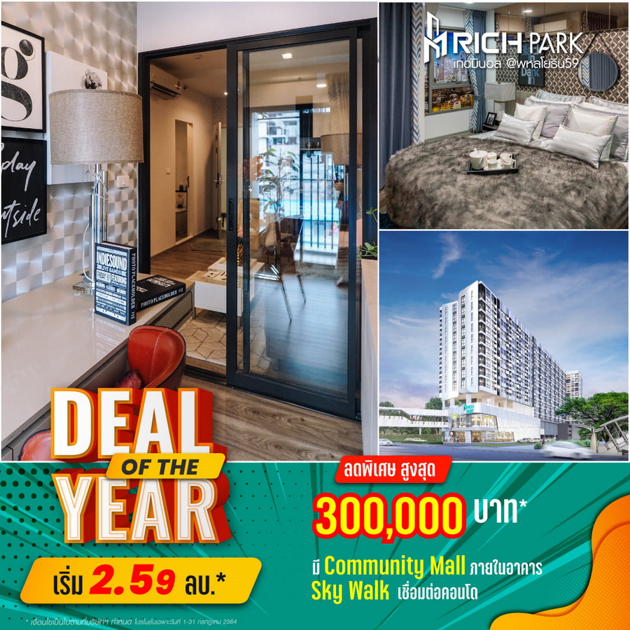 https://richy.co.th ริชพาร์ค เทอมินอล @พหลโยธิน59 (Rich Park Terminal @ Phahonyothin 59) คอนโดติดรถไฟฟ้าพร้อมอยู่ ที่เรียกว่าติดรถไฟฟ้าอย่างแท้จริง เพระเป็นคอนโดที่มีทางเดิน Sky Walk เชื่อมต่อจากสถานีรถไฟฟ้าเข้าสู่ตัวโครงการ พร้อมเพลิดเพลินกับ Shopping Mall ภายในโครงการ