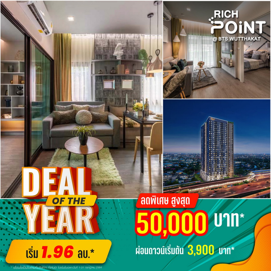https://richy.co.th ริชพอยท์ @ บีทีเอส วุฒากาศ (Rich Point @ BTS Wutthakat) คอนโดติดรถไฟฟ้า 0 เมตร จาก BTS วุฒากาศ ใช้เวลาเดินทางน้อยลง เพิ่มเวลาชีวิตให้มากขึ้น เชื่อมต่อไปยังย่านธุรกิจได้ทั้ง BTS และ MRT จะเข้า สีลม-สาทร-สยาม-จตุจักร-อโศก-ทองหล่อ-พระราม9 ก็สะดวก
