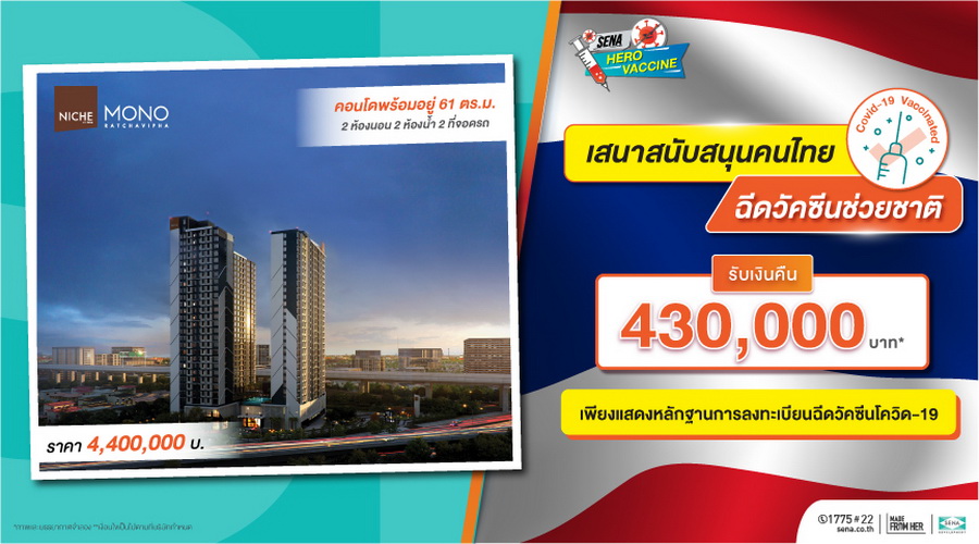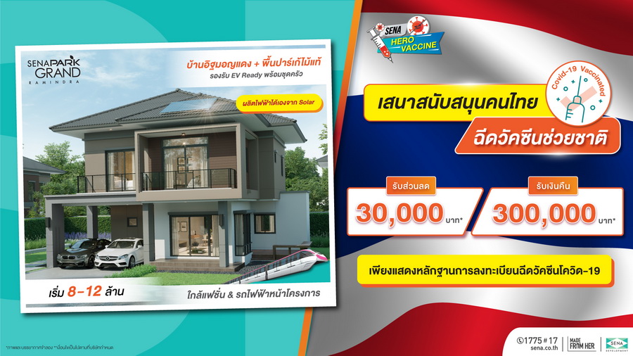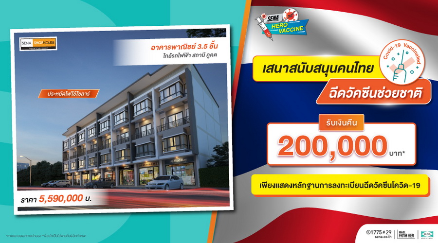 SENA ตั้งการ์ดสูงสู้วิกฤตโควิด ชูเซอร์วิสเซฟลูกค้าปั้นโปรฯ "SENA HERO VACCINE" รับส่วนลดสูงสุด 5 แสนบาท