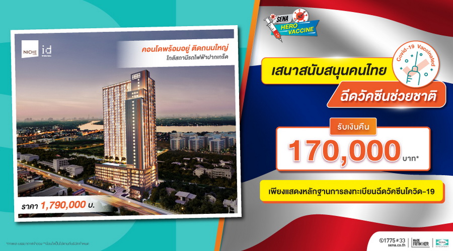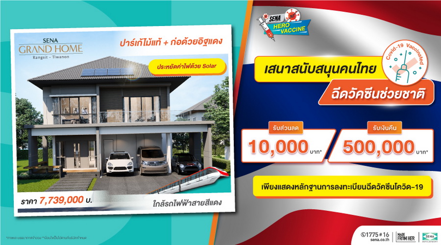 SENA เล็งเห็นถึงความปลอดภัยของลูกค้าเป็นสิ่งสำคัญสุด เดินหน้าตั้งการ์ดสูง ปรับแผนกู้วิกฤตสู้โควิด - 19 ขานรับพร้อมให้ความร่วมมือภาครัฐ และรับผิดชอบต่อสังคม ลดการแพร่ระบาดของเชื้อไวรัสโควิด - 19 ชูเซอร์วิสเซฟลูกค้า บริการขายออนไลน์ผ่าน 4 ช่องทาง ล่าสุดเปิดลิสต์บ้านเดี่ยว - คอนโด 22 โครงการ อัดโปรฯ "SENA HERO VACCINE" สนับสนุนคนไทยฉีดวัคซีนช่วยชาติ รับส่วนลดสูงสุดถึง 500,000 บาท เริ่มแล้วตั้งแต่วันนี้ จนถึง 15 ก.ย.64