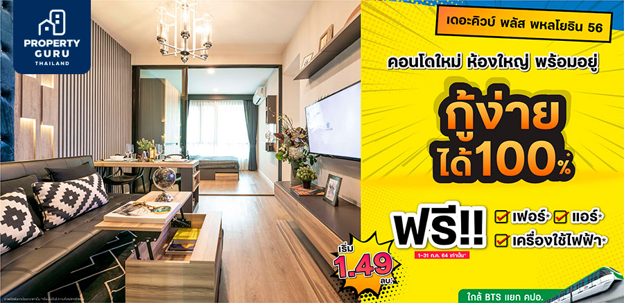 The Cube Plus Phahonyothin 56 (เดอะคิวบ์ พลัส พหลโยธิน 56) คอนโดมิเนียมใหม่สไตล์โมเดิร์นโลว์ไรส์ (Low Rise) สูง 7 ชั้น เพดานสูง 2.70 เมตร จาก บริษัท โซเคน ดีเวลลอปเม้นท์ กรุ๊ป จำกัด พร้อมโอนกรรมสิทธิ์ พร้อมเข้าอยู่ได้ทันที และเพื่อลงทุนอสังหาริมทรัพย์ เปิดให้คำปรึกษาเพิ่มความสะดวกให้กับลูกค้าก่อนยื่นกู้ขอสินเชื่อซื้อคอนโดมิเนียม 'กู้ง่ายได้ 100%' พิเศษรับฟรี เครื่องใช้ไฟฟ้า 6 รายการ และเฟอร์นิเจอร์ครบทุกฟังก์ชั่น จองเบา 999 บาท เริ่ม 1.49 ล้าน*