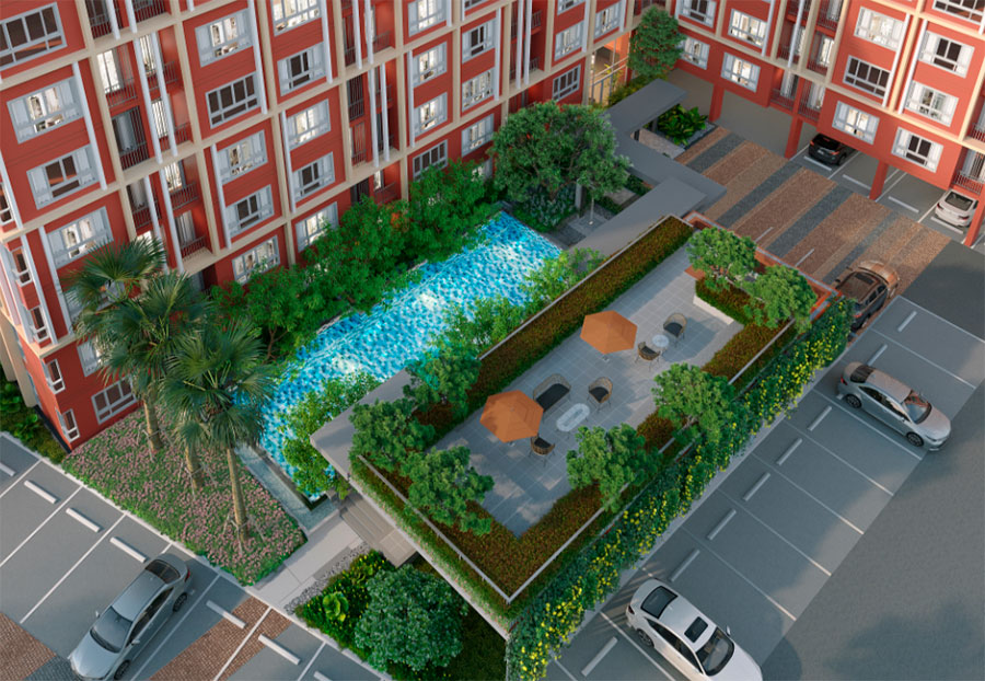 PACK MORE PEACE แพ็กให้พักท่ามกลางธรรมชาติ คอนโดมิเนียมที่ออกแบบมาเพื่อเชื่อมต่อคุณ กับธรรมชาติไว้ด้วยกัน พร้อมส่วนกลางครบครันรายล้อมด้วยต้นไม้สีเขียว ให้รู้สึกผ่อนคลายได้ทุกวัน