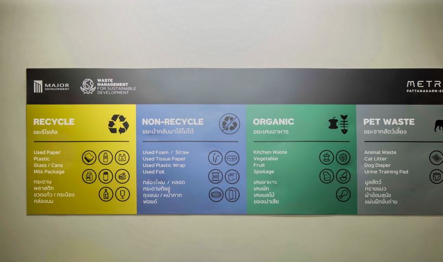 เมเจอร์ ดีเวลลอปเม้นท์ ขอเป็นส่วนหนึ่งในการสร้างโลกน่าอยู่ ด้วยการส่งเสริมการแยกขยะอย่างถูกวิธี เพื่อการลดปริมาณขยะในที่อยู่อาศัย เพราะเชื่อว่า การจัดการของเสีย (Waste Management) ที่เริ่มต้นด้วยการทิ้งขยะอย่างถูกต้อง ขยะจะถูกนำไปสร้างคุณค่าได้ อีกทั้งยังช่วยเหลือระบบสิ่งแวดล้อม ทั้งทางบก ทางน้ำ และทางอากาศได้ หากทุกคนใส่ใจและช่วยกันจัดการขยะตั้งแต่ในบ้านของตัวเองอย่างถูกวิธี