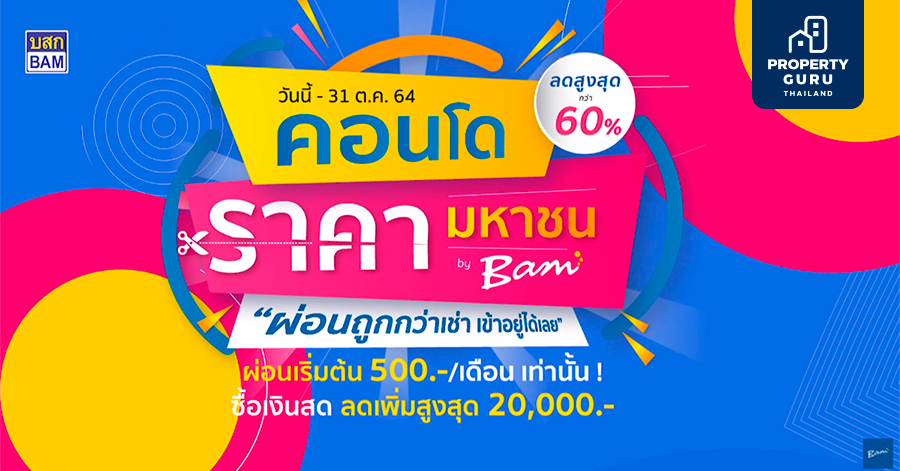 BAM จัดงาน"คอนโดราคามหาชน" ผ่อนถูกกว่าเช่าเข้าอยู่ได้เลย ลดราคาสูงสุดกว่า 60% เริ่มต้น 500 บ./ด.