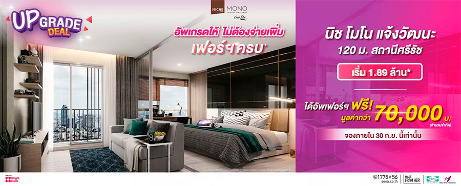 คอนโด "นิช โมโน แจ้งวัฒนะ" จัดโปรฯ UPgrade DEAL อัพเฟอร์ฯ ฟรี มูลค่ากว่า 70,000 บ. เริ่ม 1.89 ล้าน*