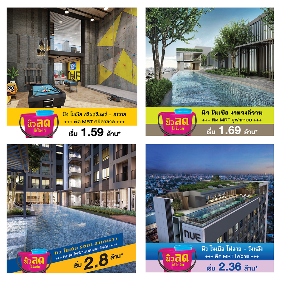 นิวลดให้รีบตัก ผ่อน99 บาท/วัน ทุกยูนิต เฟอร์ครบ เริ่มเพียง1.59 ล้านบาท กับ นิว โนเบิล 4 โครงการ 4 ทำเล ได้แก่