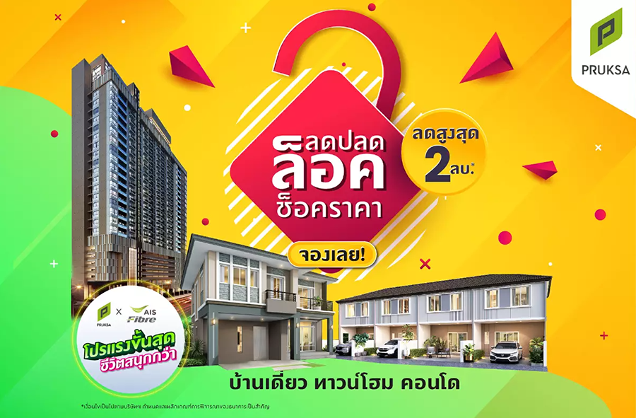พฤกษา เรียลเอสเตท อัดโปรใหญ่ "ลดปลดล็อค ช็อคราคา" ลดสูงสุด2 ล้านบาท* บ้านเดี่ยว ทาวน์โฮม คอนโด ส่วนลดปลดล็อค บ้านเดี่ยว ลดสูงสุด 2 ล้านบาท* ทาวน์เฮ้าส์ ลดสูงสุด 1 ล้านบาท* คอนโด ลดสูงสุด 4 แสนบาท* จองเดือนนี้ ครบ จบ ทุกความต้องการ รับฟรี ไม่มีภาระเพิ่ม จองด่วน! โอนด่วน! ถึง 30 กันยายนนี้