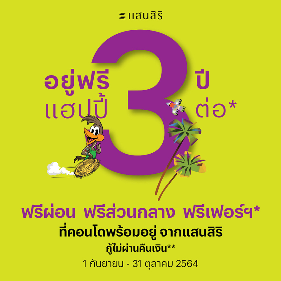 รับต่อที่หนึ่ง "ฟรีผ่อน" ให้คุณสบายใจ เพราะแสนสิริผ่อนให้ 3 ปี*,
