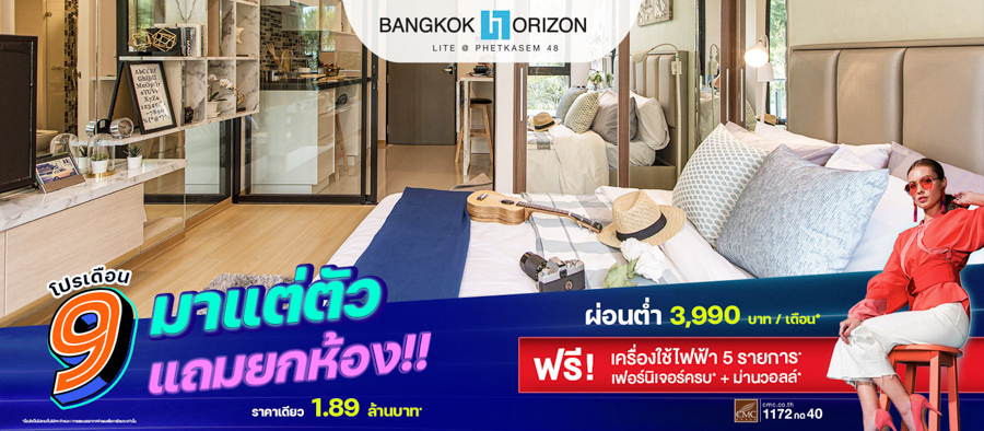 แบงค์คอก ฮอไรซอน ไลท์ @ สถานีเพชรเกษม 48 (Bangkok Horizon Lite @ Phetkasem 48) ราคาเดียว 1.89 ล้านบาท* มาแต่ตัวแถมยกห้อง คอนโดพร้อมอยู่บรรยากาศรีสอร์ท สะดวกสบายทุกการเดินทาง 150 ม. ถึง MRT เพชรเกษม 48