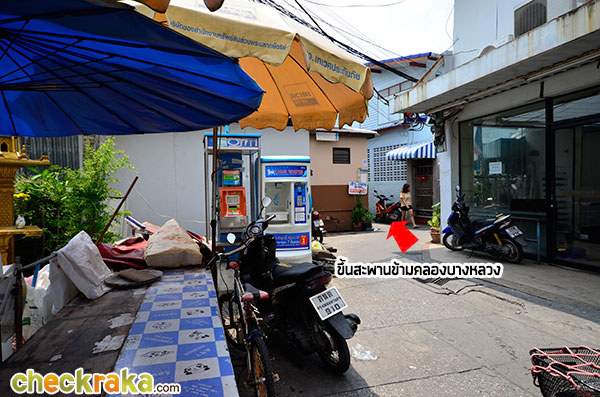 สะพานเล็กๆ ที่มีคนเดินขึ้นไปเป็นสะพานข้ามคลองบางหลวง