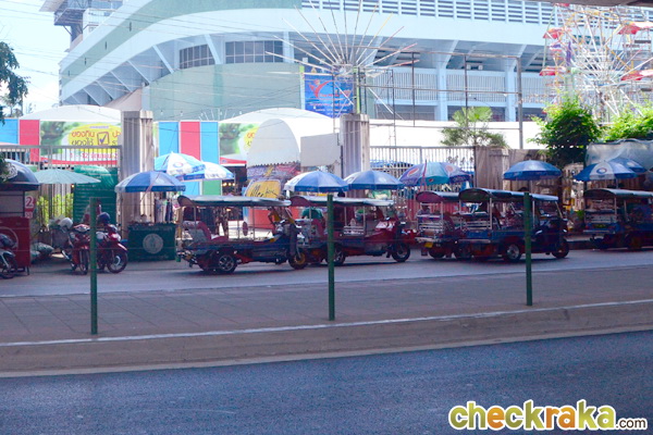 ด้านข้างมาบุญครองเป็นสนามกีฬาแห่งชาติ ด้านหน้าจะเป็นโซนขายของริมทางยาวเลยค่ะ