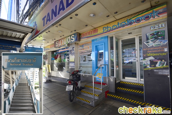 เดินมาจนถึงทางขึ้น-ลง BTS สนามกีฬาแล้ว ตรงนี้มีร้านธนาบุตร รับทำ Photobook, Sticker, บัตรต่างๆ ค่ะ