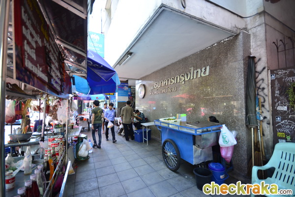 ธนาคารกรุงไทย ด้านหน้ามีรถเข็นขายอาหารอยู่เรียงราย บรรดาพนักงานธนาคารก็คงมาใช้บริการกันเยอะพอสมควรค่ะ
