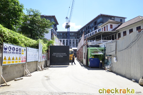ด้านหน้าโครงการทำเป็นทางเข้าแนวลึกเข้าไป ด้านในเราเห็นตึกอาคารเป็นรูปเป็นร่างแล้วค่ะ