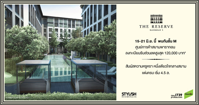 เดอะ รีเซิร์ฟ เกษมสันต์ 3 (The Reserve Kasemsan 3) จะไปจัดงานที่ ชั้น M ของสยาม พารากอน (Siam Paragon) ด้วยค่ะ ผู้ที่สนใจสามารถเข้าไปลงทะเบียนเพื่อรับสิทธิพิเศษส่วนลดสูงสุด 120,000 บาท ได้ตามรายละเอียดด้านล่างนี้เลยค่ะ