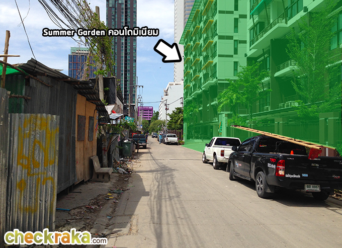 คอนโดด้านขวามือคือ "Summer Garden (ซัมเมอร์ การ์เดนท์)"