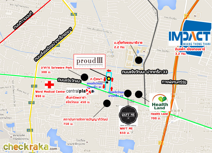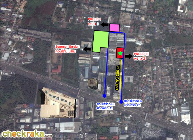 "ไตร พร็อพเพอร์ตี้ (TriProperty)" เตรียมเปิดคอนโดมิเนียมโลว์ไรส์ 2 โครงการ ได้แก่ "Proud III (พราว 3)" ในย่านปากเกร็ด มูลค่าโครงการประมาณ 400 ล้านบาท และโครงการย่านสุขุมวิท โดยจะเป็นแบรนด์ใหม่ มูลค่าโครงการประมาณ 600 ล้านบาท โดยตั้งเป้ายอดขาย 2 โครงการนี้ 800-1,000 ล้านบาท วันนี้ Checkraka.com จึงลงพื้นที่พาไปดูทำเลรอบๆ โครงการ "Proud III (พราว 3)" ในย่านปากเกร็ดกันค่ะ