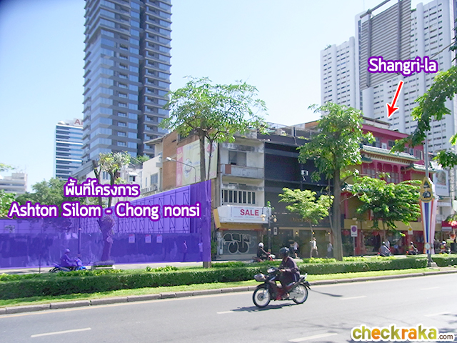 เดินเลยร้านอาหาร Shangri-la มา 2 คูหาจะเจอที่ตั้งโครงการ Ashton Silom - Chong nonsi ครับ