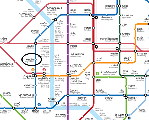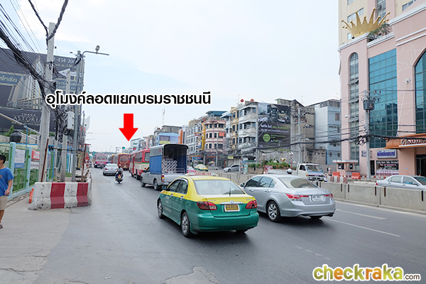 เขมะสิริอนุสสรณ์ ตรงไปประมาณ 350 เมตร ให้เลี้ยวซ้ายเข้าสู่ถนนจรัญสนิทวงศ์