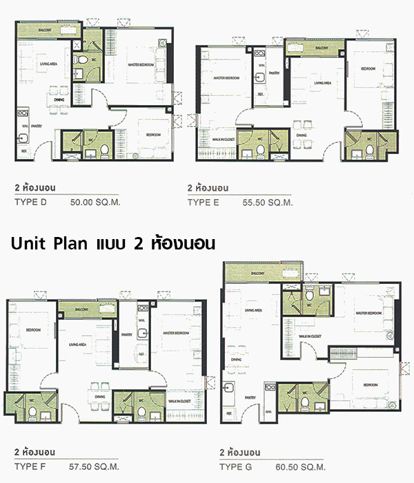 | 2 ห้องนอน Type F | 57.50 | ประมาณ 6.00 -6.90 |