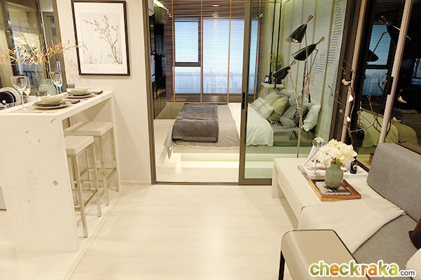 ห้องแบบ 1 ห้องนอน ในสำนักงานขายจะมีตัวอย่างให้ดูแค่ห้องนี้ห้องเดียวนะคะ ไปชมกันเลย