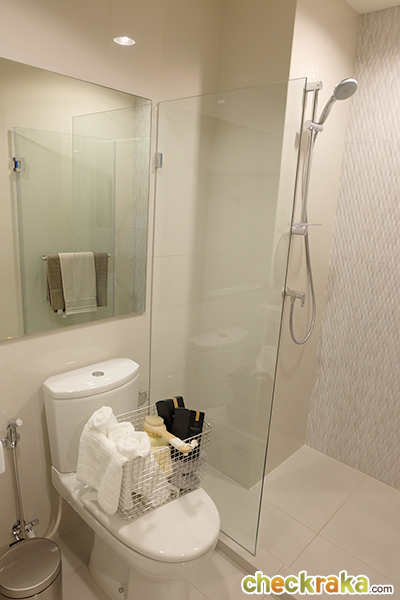 ภายในห้องน้ำจะมีกระจก ราวแขวนผ้า อ่างล้างหน้า โถสุขภัณฑ์ ที่ใส่กระดาษชำระ