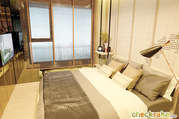 ห้องนอนมาพร้อมกับประตูกระจกบานสไลด์ สามารถวางเตียงขนาด 6 ฟุต ได้ค่ะ