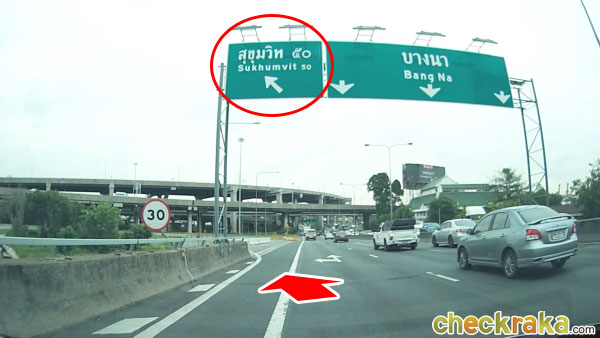 พอลงทางด่วนมาแล้วจะมาออกตรงปากซอยสุขุมวิท 50 ให้เลี้ยวซ้ายเพื่อเข้าถนนสุขุมวิท