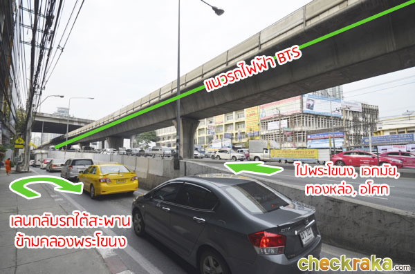 ส่วนถ้าตรงไป ไม่กลับรถก็จะไปพระโขนง, เอกมัย, ทองหล่อ และอโศก ได้ค่ะ