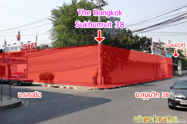พื้นที่โครงการจะอยู่บริเวณหัวมุม จุดตัดระหว่างซอยสุขุมวิท 38 และซอยแสงชัยค่ะ