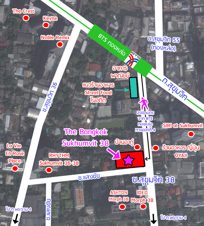 ซึ่งโครงการ The Bangkok Sukhumvit 38 นั้นอยู่ห่างรถไฟฟ้า BTS สถานีทองหล่อประมาณ 200 เมตร เท่านั้น