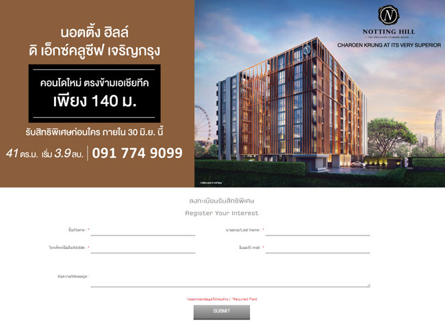 ชมทำเล "นอตติ้ง ฮิลล์ ดิ เอ็กซ์คลูซีฟ เจริญกรุง"คอนโดใหม่ตรงข้ามเอเชียทีคเพียง 140 ม.