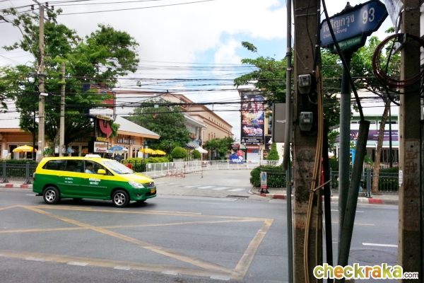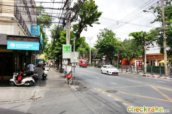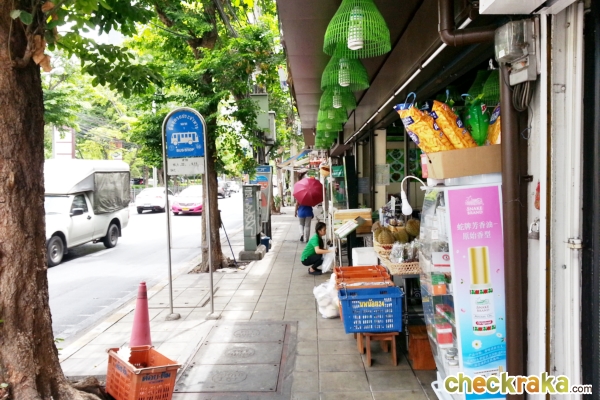 เดินจากปากซอยเจริญกรุง 93 มาทางขวามือ ก็จะมีป้ายรถประจำทาง และร้านอาหารอยู่ด้านหน้าเลยค่ะ