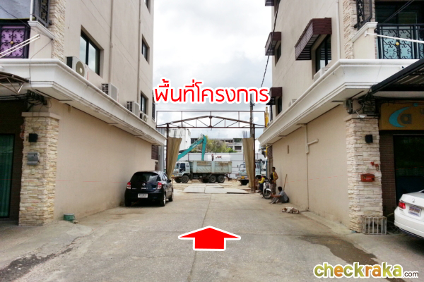 จะเห็นอาคารพาณิชย์ 2 อาคาร ทางซ้ายมือค่ะ ทางเข้าโครงการจะอยู่ระหว่างอาคารพาณิชย์ทั้ง 2