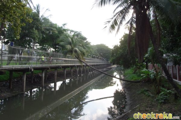 เดินเข้าไปเลยครับจะเจอสะพานไม้ข้ามไปสวนเบญจกิติได้