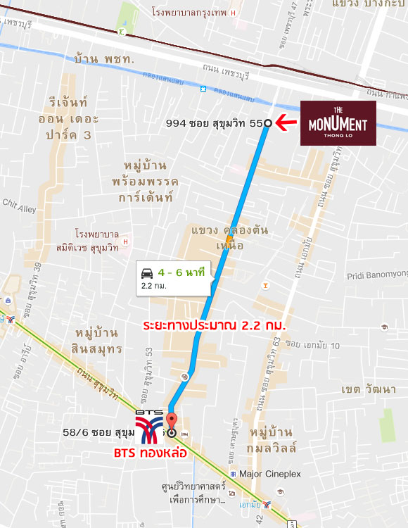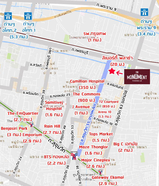 แผนที่สถานที่ต่างๆ บริเวณใกล้เคียง โครงการ The Monument Thonglo