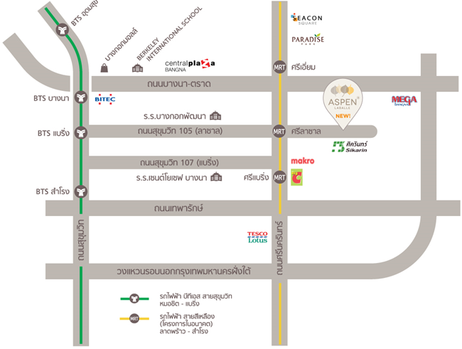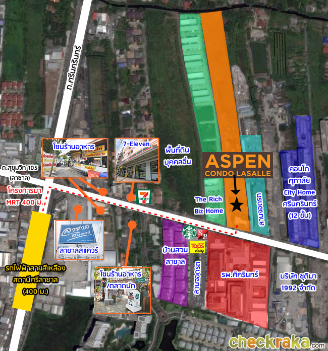 พรีวิวทำเลคอนโด "ASPEN Condo Lasalle" คอนโดใหม่ ใกล้ MRT สายสีเหลือง ศรีลาซาล