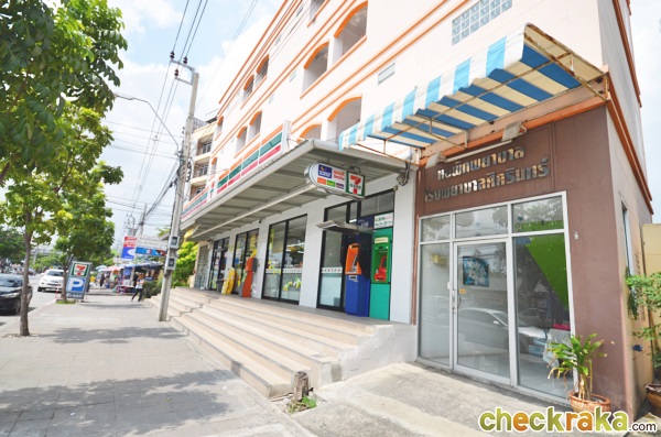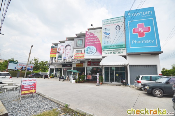 ใกล้ๆ กันก็จะมีแนวอาคารพาณิชย์ มีร้านขายยา และร้านอาหารด้วยค่ะ