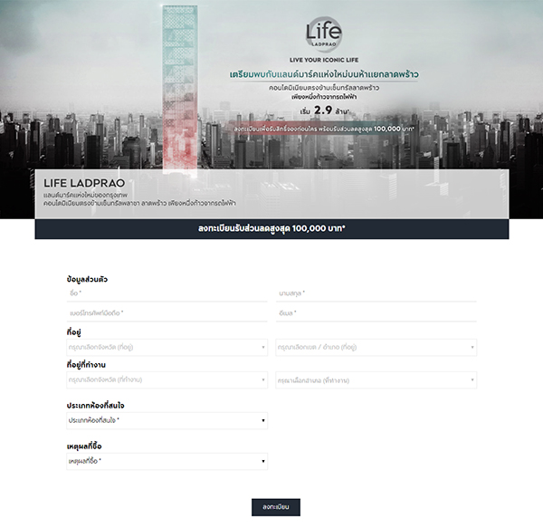 สำหรับผู้ที่สนใจโครงการ ไลฟ์ ลาดพร้าว สามารถลงทะเบียนเพื่อรับส่วนลดสูงสุด 100,000 บาท ได้ที่ลิงก์ด้านล่างนี้