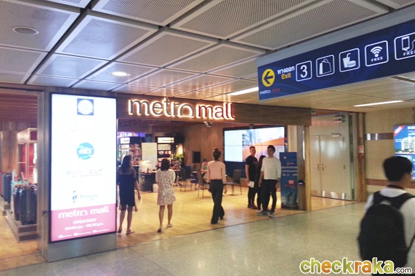บรรยากาศภายใน Metro Mall มีร้านกาแฟ ร้านหนังสือ ร้านสะดวกซื้อ Lawson 108 ฯลฯ