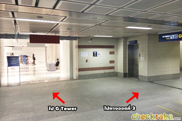 ตรงมาเรื่อยๆ จะผ่านกับทางออกที่ 3 แบบขึ้นบันได ไม่ได้เป็นบันไดเลื่อนแบบด้านหน้า G Tower ที่เราออกมา